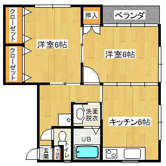 | 間取り | 2DK (洋室:6、6) DK6 |