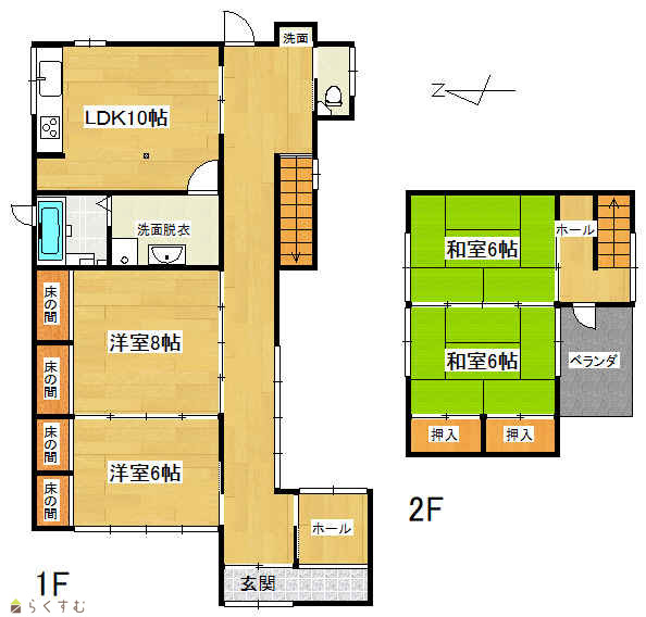 | 間取り | 4LDK (和室:8畳、6畳) (洋室:6、6) LDK10 |