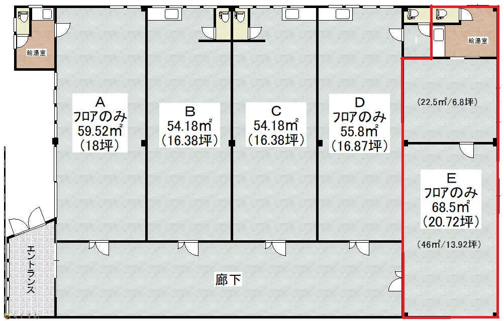 | 所在階/階数 | 1階/1階 | 号室 | E号室 |