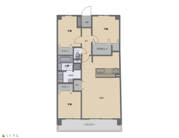 | 間取り | 3LDK (洋室:6.5、5.5、5) LDK12 |