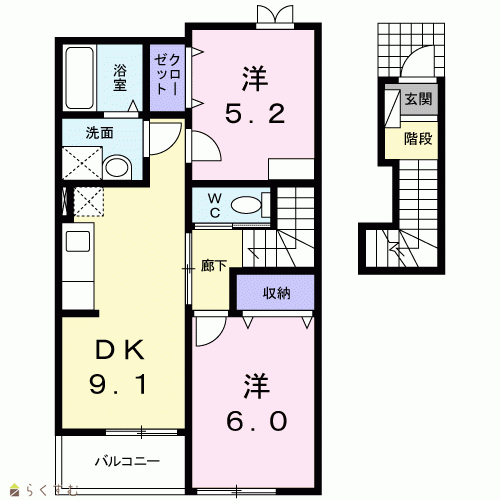 | 間取り | 2DK (洋室:6、5.2) DK9.1 |