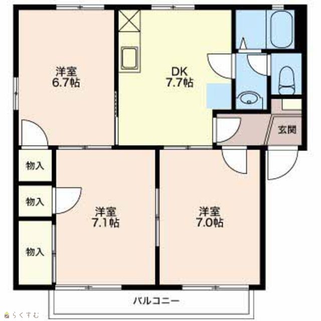 | 間取り | 3DK (洋室:7.1、7、6.7) | ||
