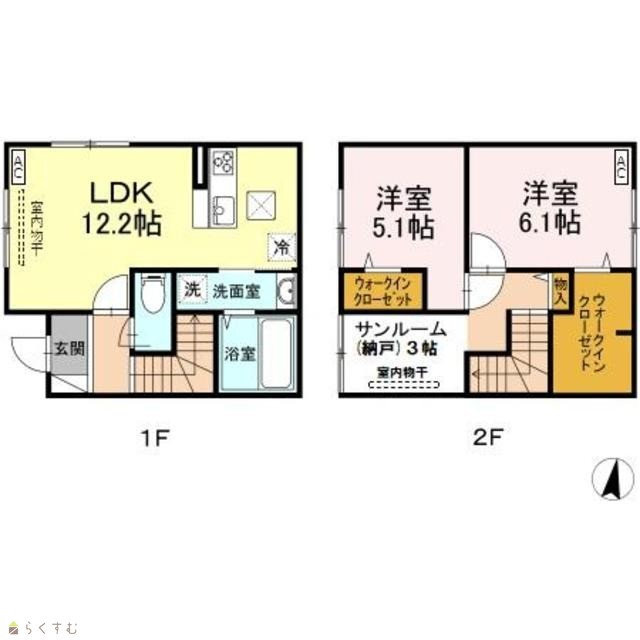 | 所在階/階数 | 1階/2階 | 号室 | B号室 |
