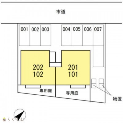 | 所在階/階数 | 1階/2階 | 号室 | 101号室 |