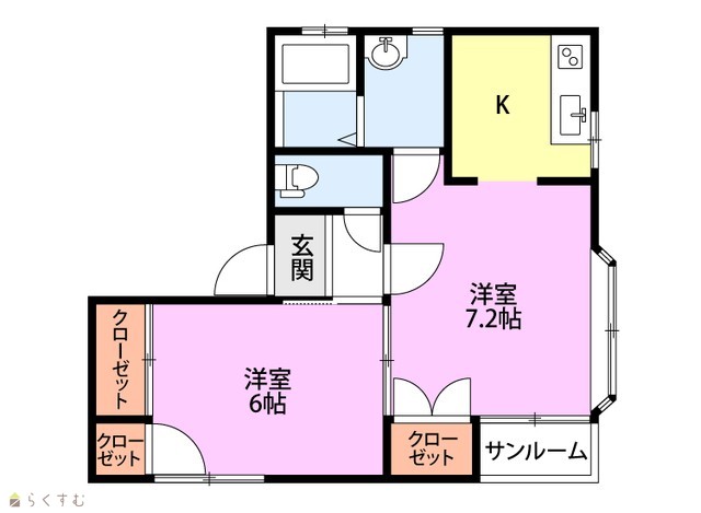 | 間取り | 2K (洋室:6、7.2) | ||