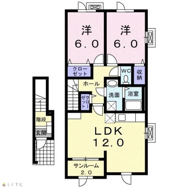 | 間取り | 2LDK (洋室:6、6) | ||