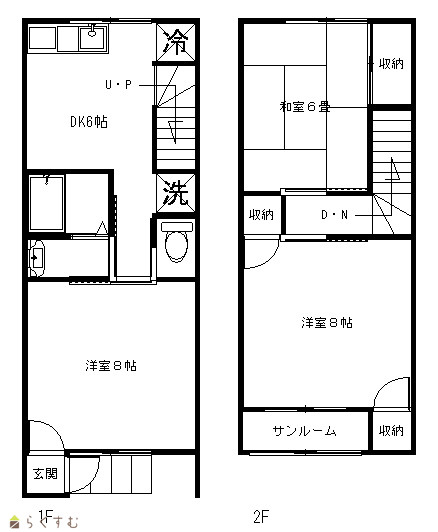 | 設備 | 日当り良好、上階なし、メゾネット、駐車2台可、駐輪場あり、駐車場1台無料、バストイレ別、追いだき機能付き、暖房便座、洗面所独立、エアコン2基、都市ガス、サンルーム、洗濯機置場 室内、脱衣所、BS端子・アンテナ、各居室照明、仲介手数料不要、礼金不要、保証会社要加入、メゾネット式 | ||
