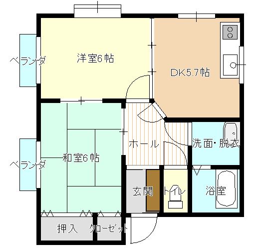| 間取り | 2DK (和室:6畳) (洋室:6) DK5.7 |