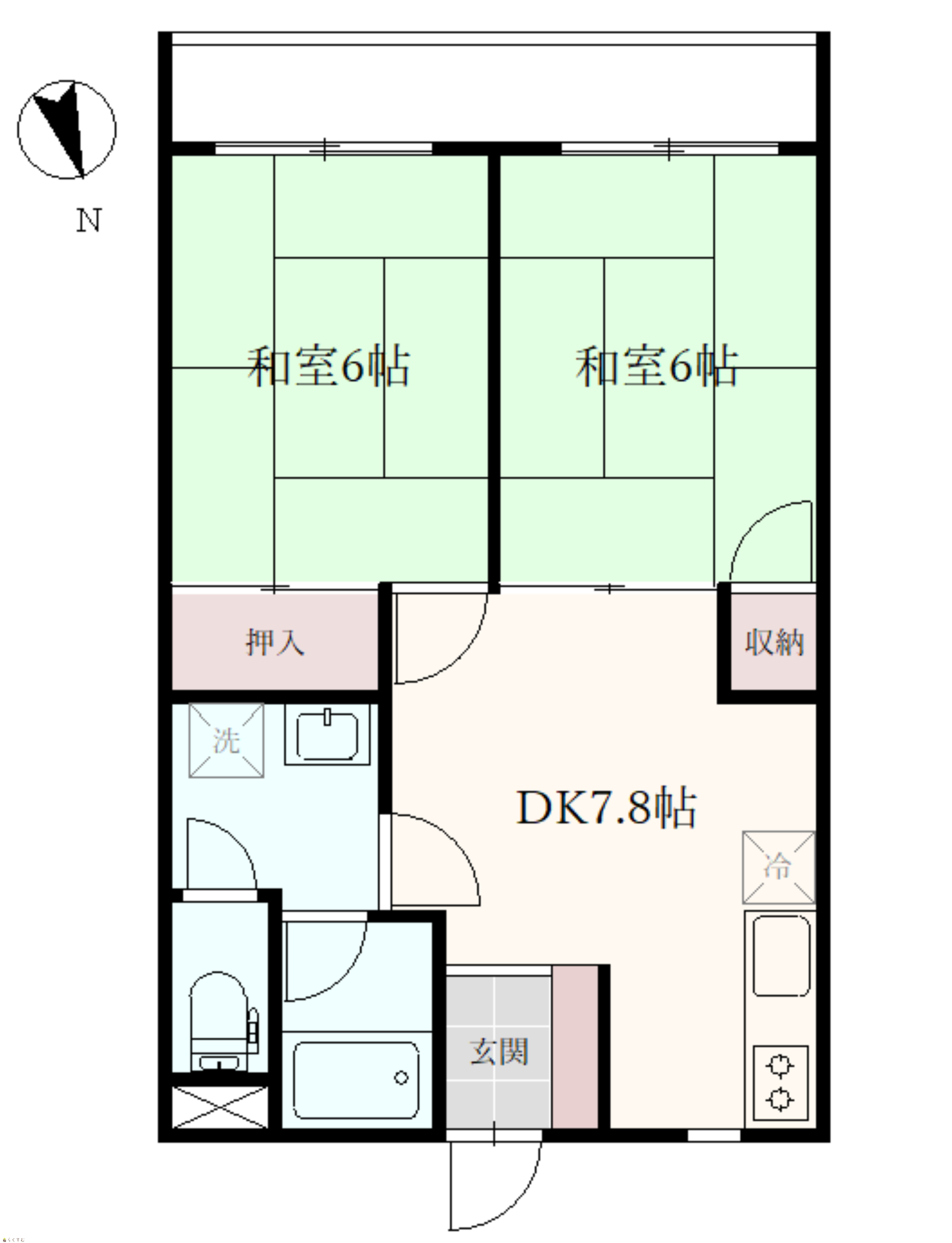 | 間取り | 2DK (和室:6畳、6畳) DK7.8 |