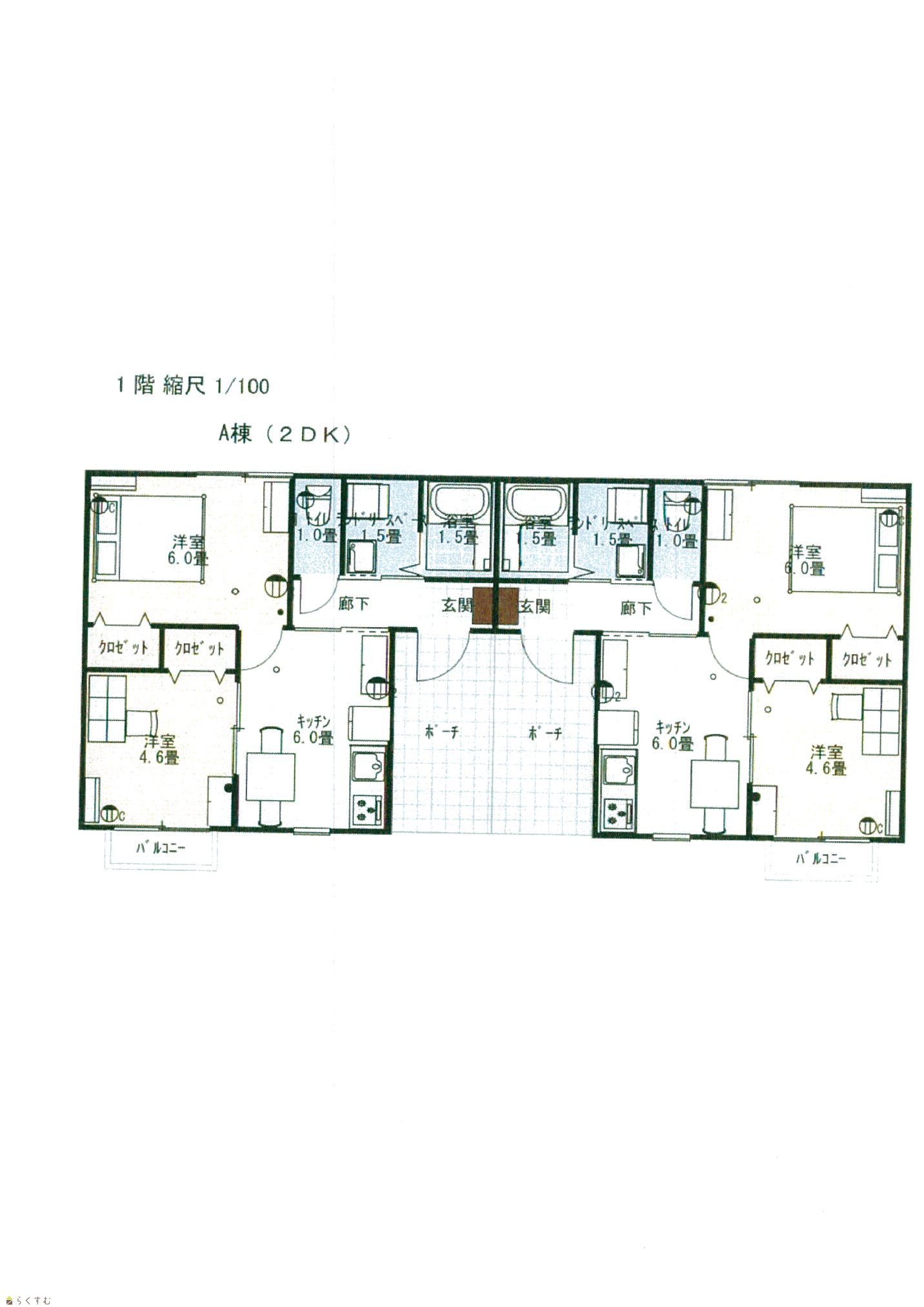 間取り 2DK (洋室:4.6、6)