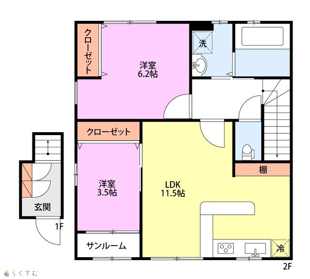 | 間取り | 2LDK (洋室:6.2、3.5) | ||