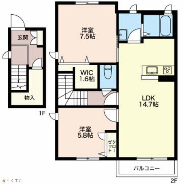 | 間取り | 2LDK (洋室:7.5、5.8) | ||