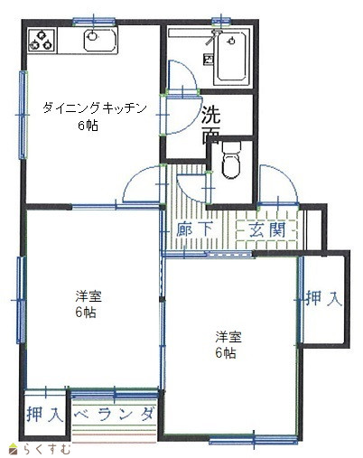 | 間取り | 2DK (洋室:6、6) DK6 |