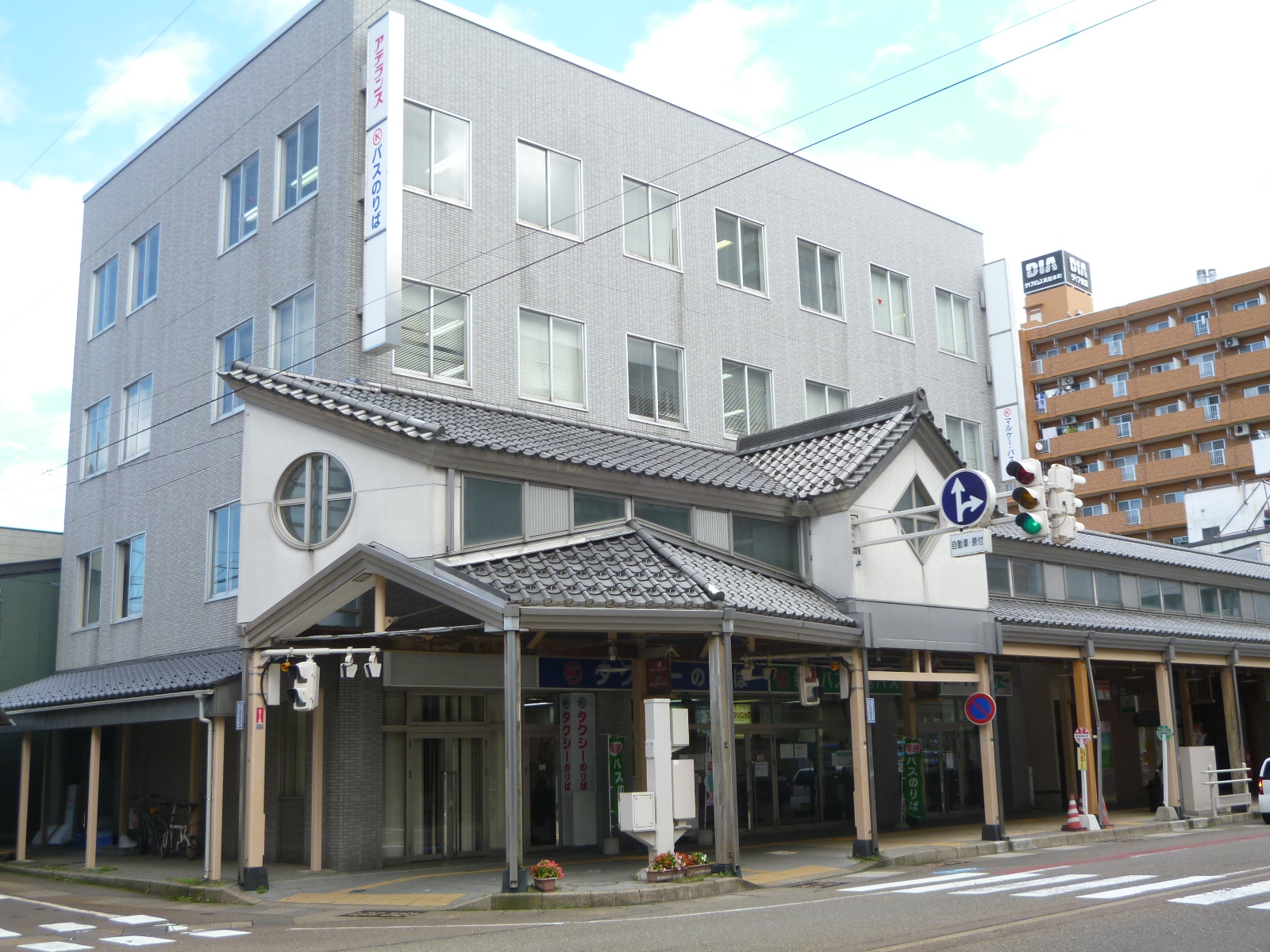 高田駅前のテナントビルです。1階はバス案内所・ハイヤー乗り場です。