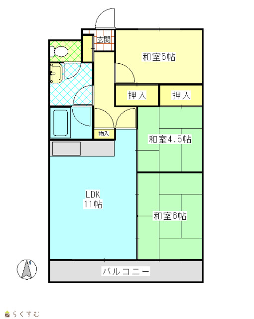 | 間取り | 3LDK (和室:6畳、4.5畳) (洋室:5) LDK10 物入れあり |