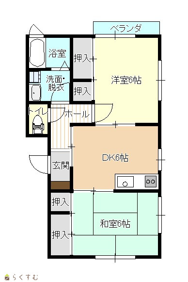 | 間取り | 2DK (和室:6畳) (洋室:6) DK6 |