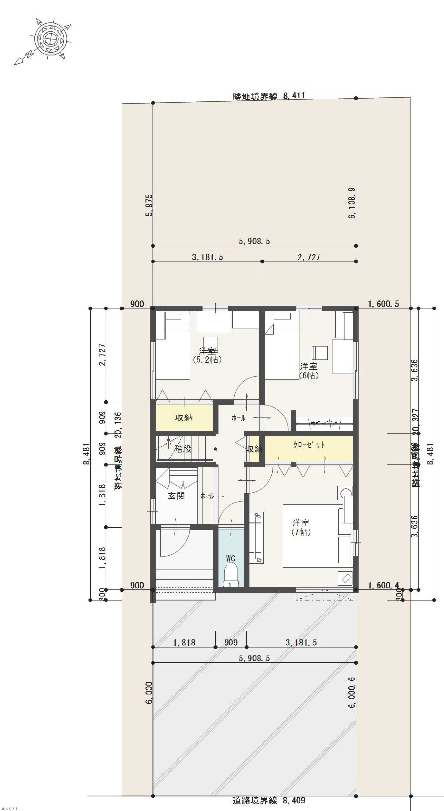 3LDK (洋室:7、6、5.2) LDK17 物干しスペースあり |