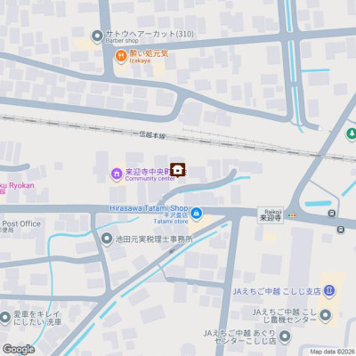 | 交通 | 駅:信越線 来迎寺駅から徒歩7分、バス:来迎寺農協前から徒歩3分 | ||