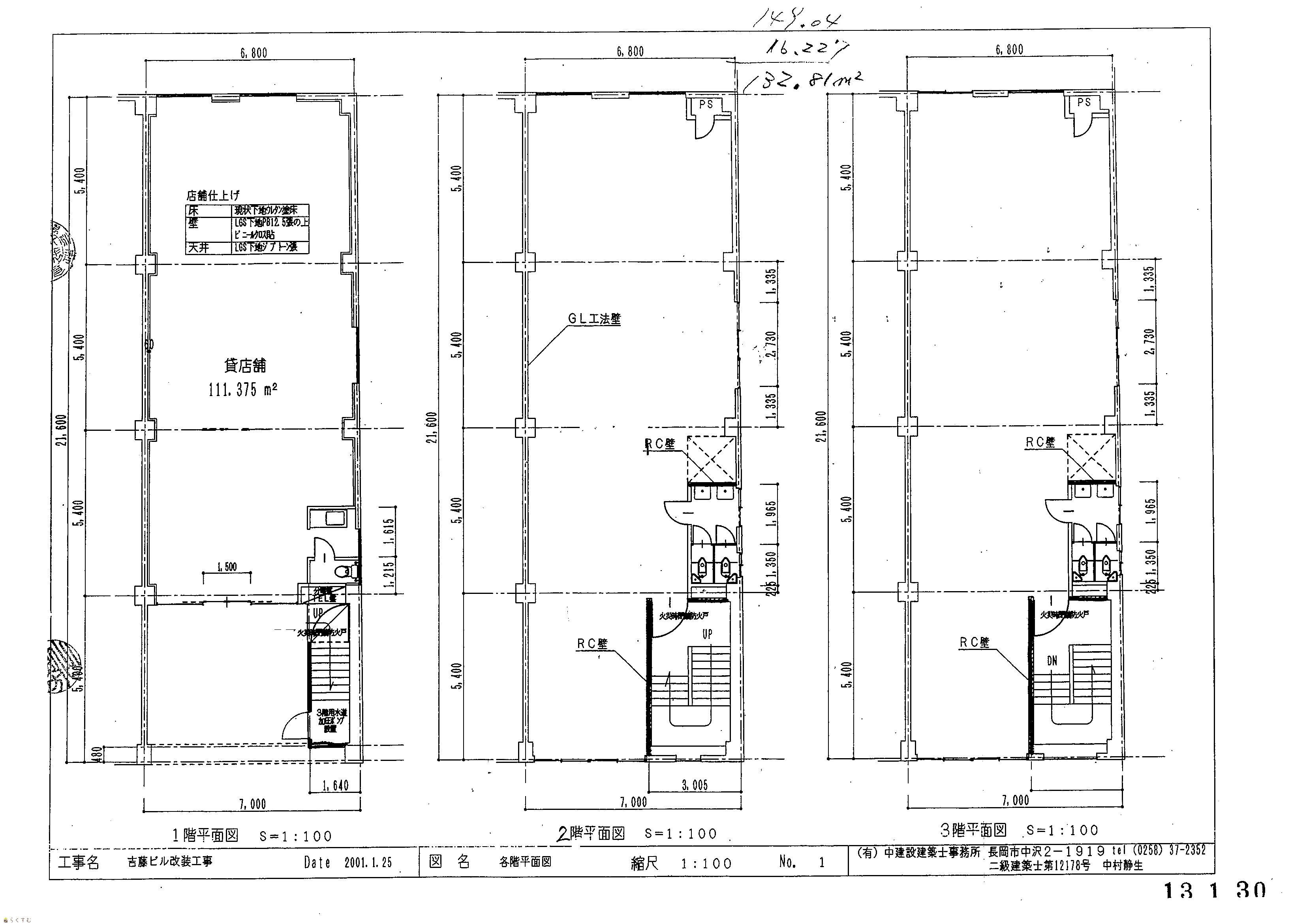 | 建物面積 | 1階 144.99㎡/ 2階 145.2㎡/ 3階 145.2㎡/ 計 435.39㎡ /131.7坪 | ||
