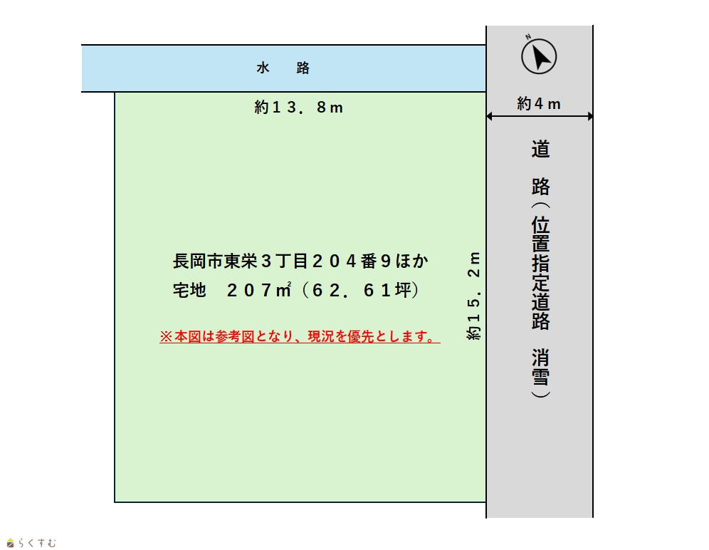 | 備考 | 売主の負担で建物解体更地となります。水道引込口径は13mm。 | ||