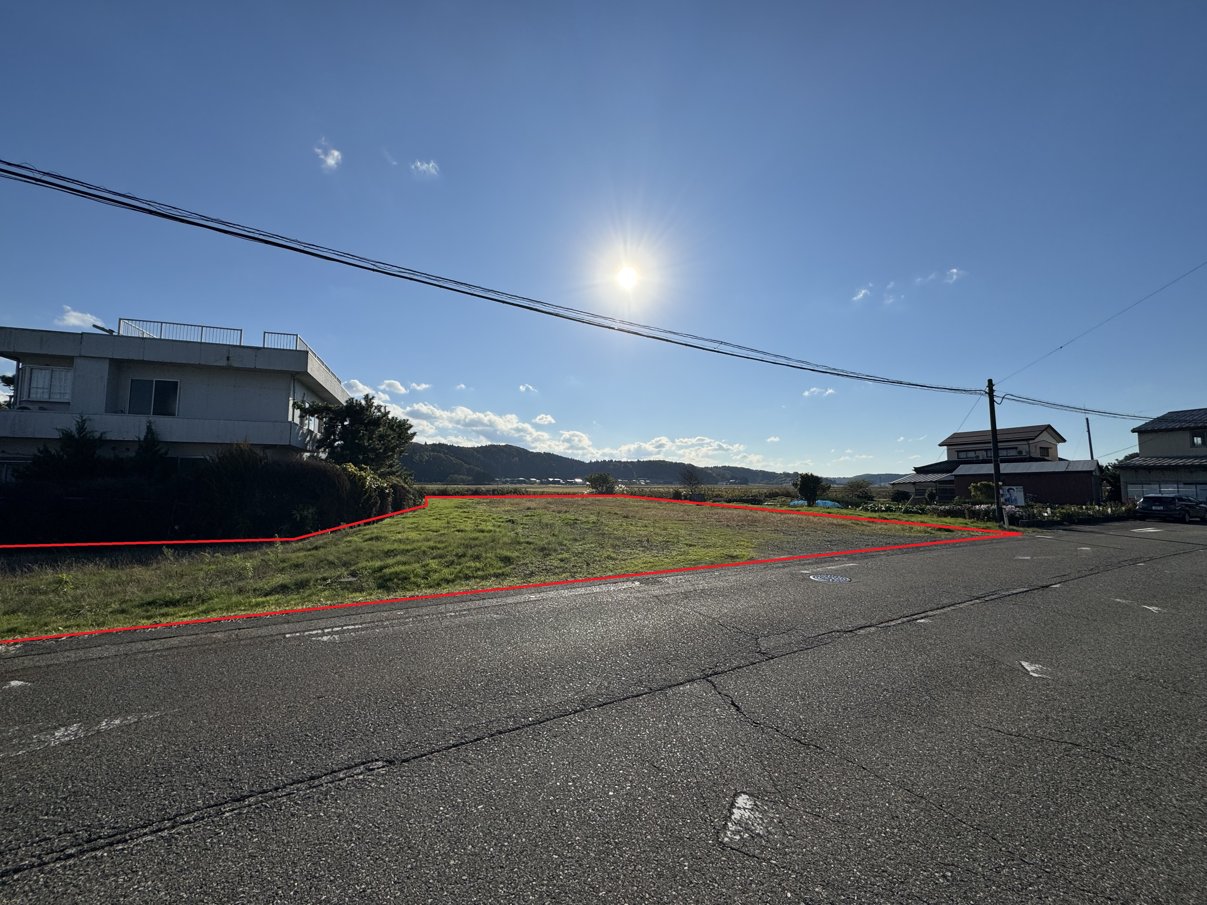 | 形状 | 間口 39.13m × 奥行 33.25m | 道路 | 県道 幅員7.9m 消雪パイプあり |