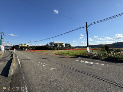 県道沿いの広々とした土地です!家庭菜園をしたい方にお勧め◎小学校徒歩9分、中学校徒歩8分でお子様が通学しやすい立地です♪