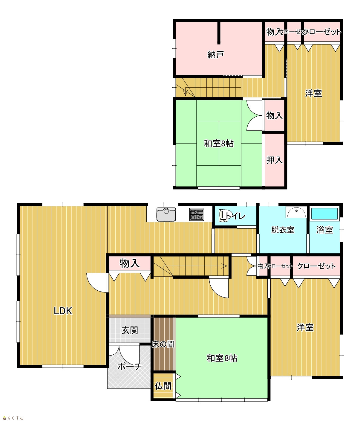 | 間取り | 4LDK (和室:8畳、8畳) (洋室:6、7.5) | ||