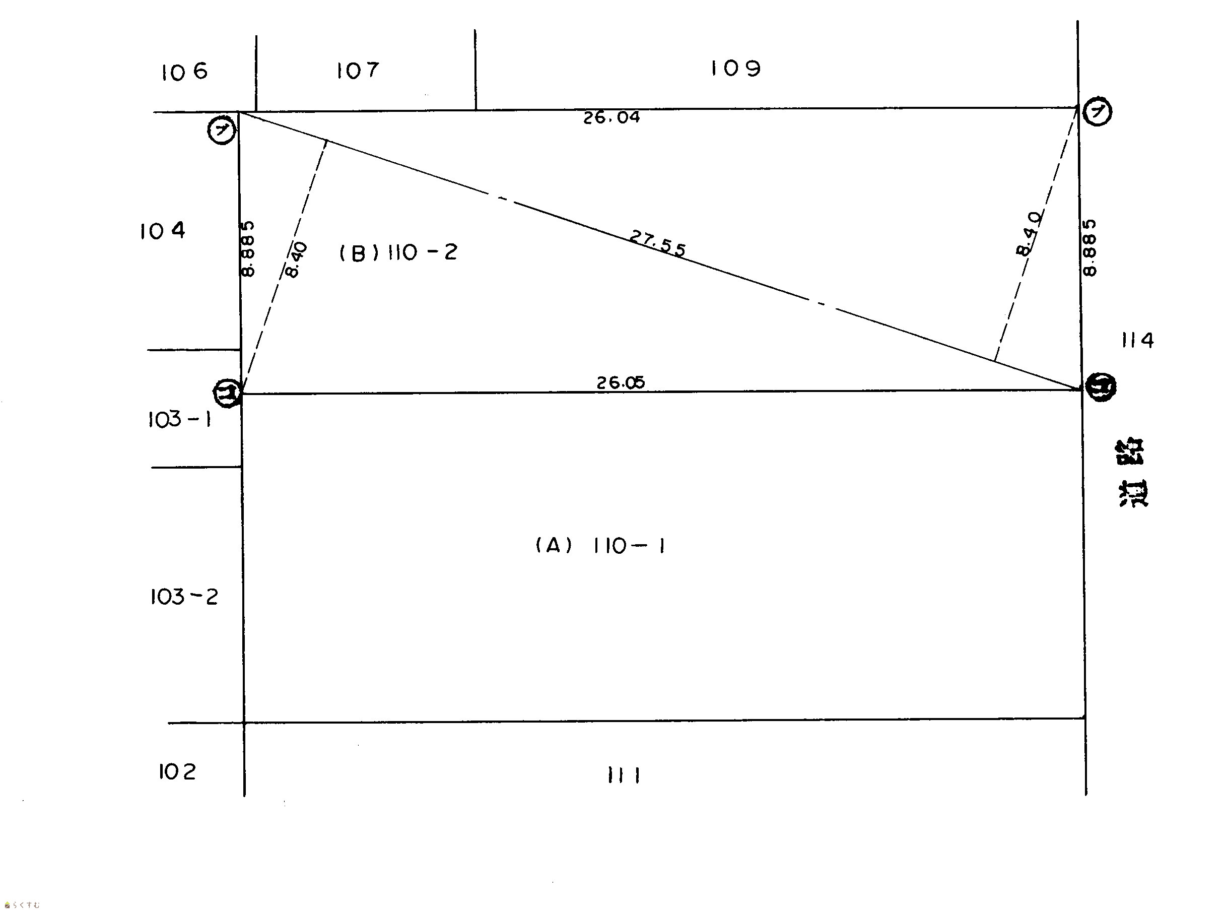 | 形状 | 間口 8.88m × 奥行 26.04m | 道路 | 西幹線43号 幅員16m |