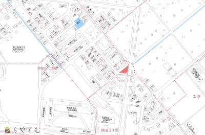 | 設備 | 前道6m以上、南側道路面す、更地、スーパー近く、建築条件なし、所有権、即引き渡し可、都市ガス(前面道路)、上水道(前面道路)、下水道(前面道路)、電気、住宅向け | ||