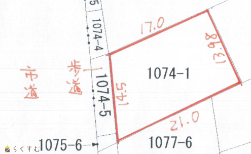 | 用途地域 | 第1種住居地域 | 地目 | 畑 (現状:宅地) |