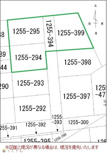 | 備考 | 現況有姿での売買となります。 地番1255-394は、公衆用道路のため、原則建築物を建てることはできませんが、 廃道することにより可能となります。 仲介手数料別途 |