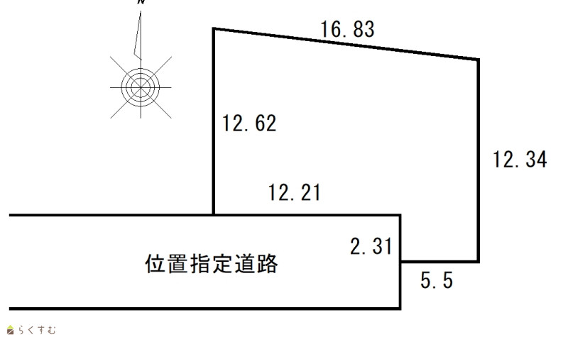 | 形状 | 間口 12.21m × 奥行 12.62m | 道路 | 位置指定道路 平成11年8月13日第3号 |