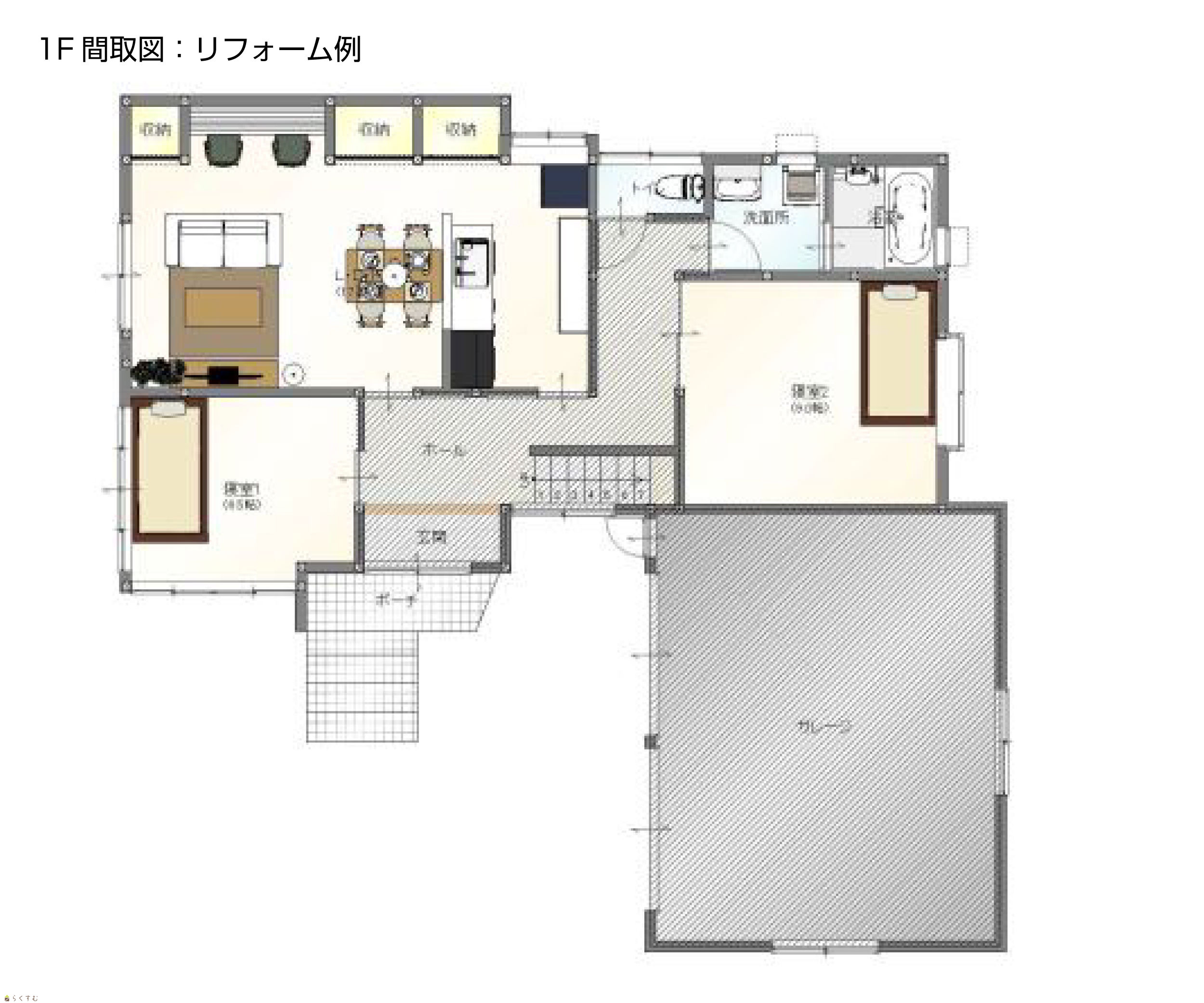 ![]() ※画像クリックで拡大表示 リフォーム例(1F間取図)