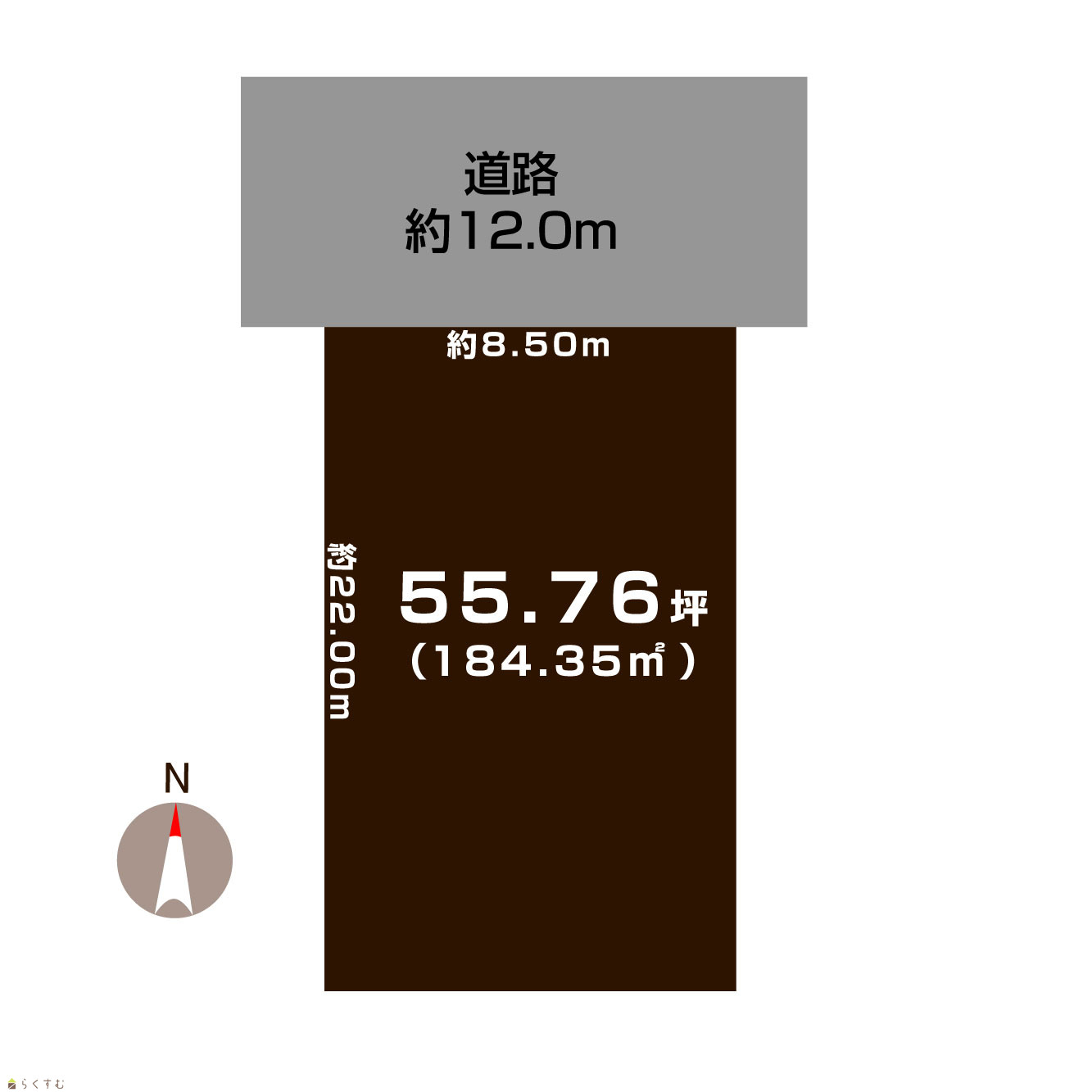 | 形状 | 間口 8.5m × 奥行 22.0m | 道路 | 公道 北 幅員12.0m |