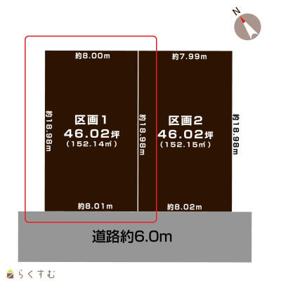 | 形状 | 間口 8.01m × 奥行 18.98m | 道路 | 公道 南西 幅員6.0m |
