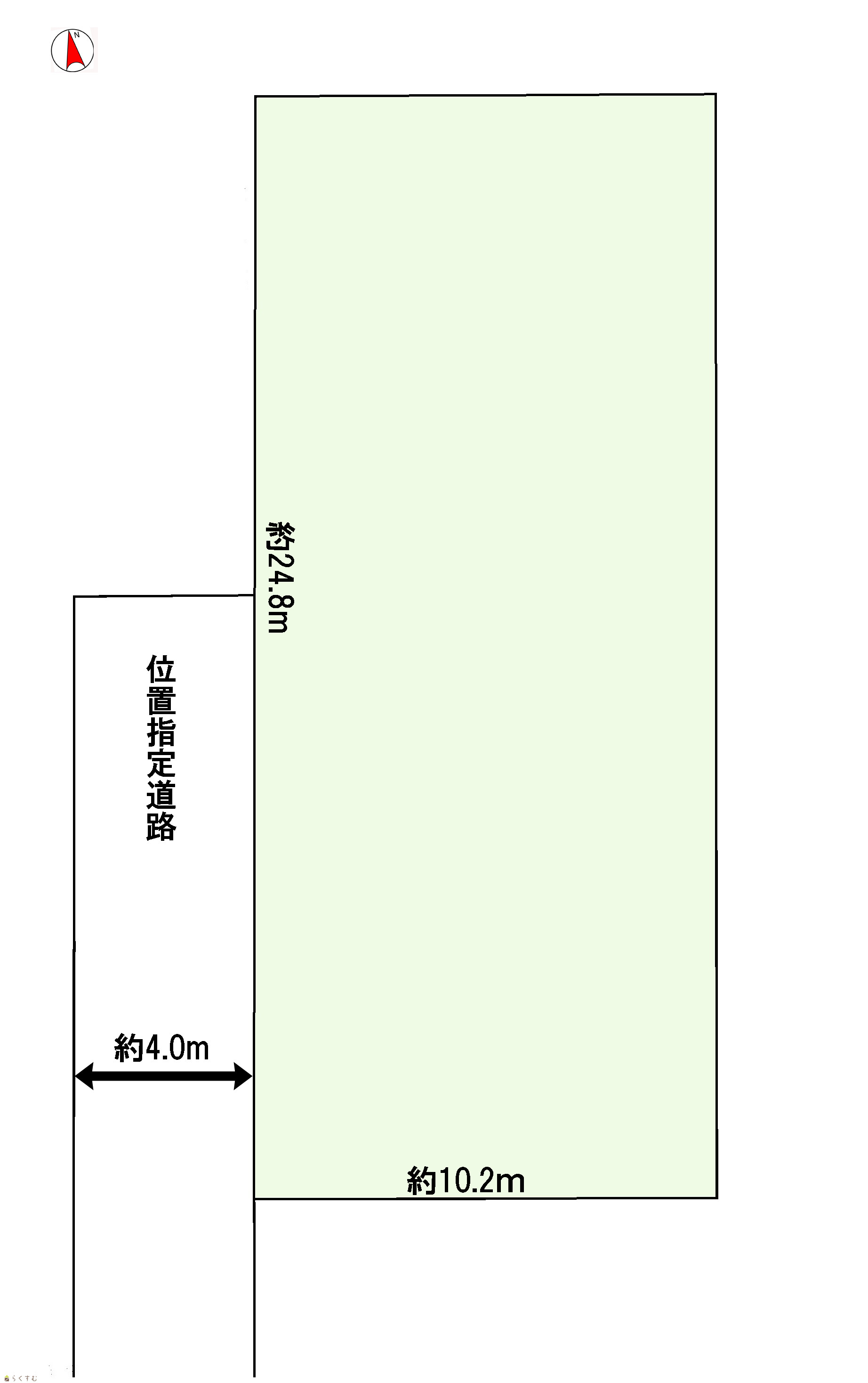 | 形状 | 間口 24.8m × 奥行 10.2m | 道路 | 西側:位置指定道路 幅員4.0m |