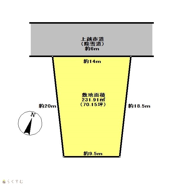 | 形状 | 間口 14m × 奥行 18m | 道路 | 北西側、6m |