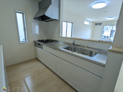 | 設備 | 閑静な住宅街、スーパー近く、LDK15帖以上、築10年以内、駐車2台可能、TVインターホン、システムキッチン、カウンターキッチン、3口コンロ、追いだき機能付き、バス1坪以上、温水洗浄便座、トイレ2か所以上、都市ガス、上水道、下水道、全居室収納あり、床下収納、シューズBOX | ||