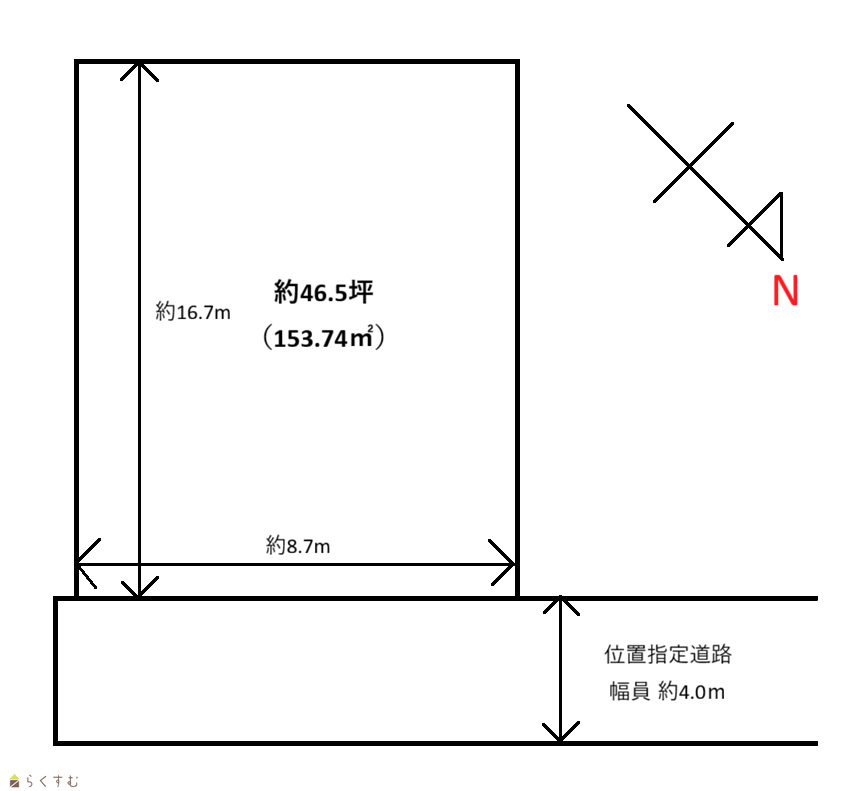 | 形状 | 間口 8.70m × 奥行 16.70m | 道路 | 接道8.7m×幅員4.0m |