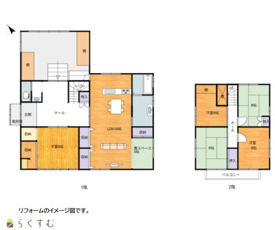 6DK (和室:8.0畳、6.0畳、6.0畳、6.0畳、5.8畳) (洋室:6.0、5.0) DK8.0 |