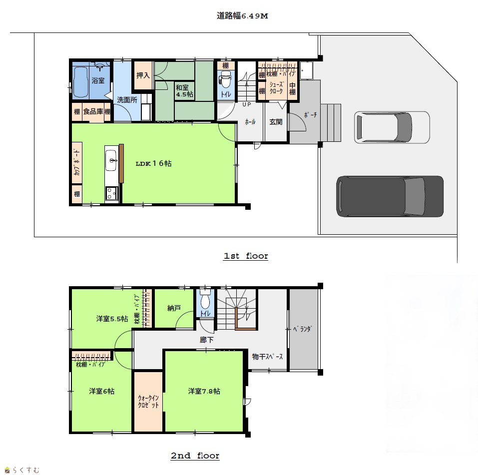 | 設備 | 角地、前面道路6m以上、瑕疵担保保険付き、建物確認・完了検査済証あり、LDK15畳以上、駐車場2台以上、TVインターホン、システムキッチン、IHクッキングヒーター、食器洗浄乾燥機、追いだき機能付き、浴室暖房乾燥機、バス1坪以上、温水洗浄便座、シャワー付き洗面台、エアコン、24時間換気システム、省エネ給湯、都市ガス、下水道、電気、ウォークインクローゼット、シューズインクローゼット、照明器具付き、即引き渡し可能 | ||