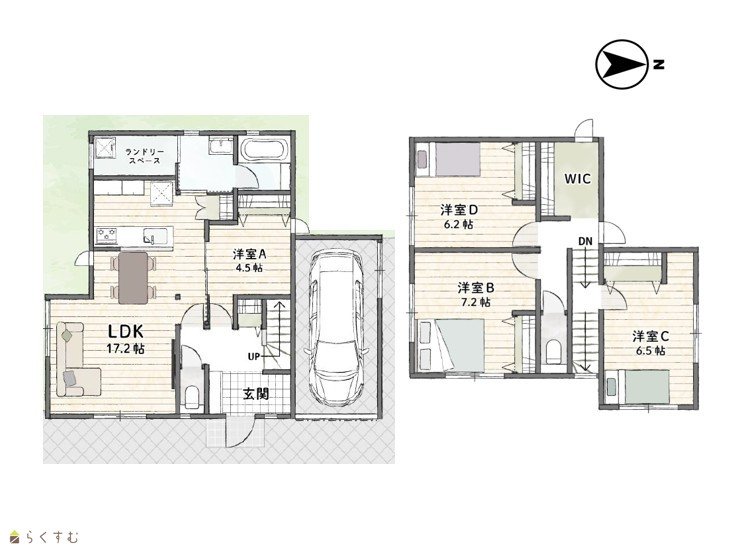 4LDK (洋室:7.2、6.5、6.2、4.5) LDK17.2 ランドリースペース有 |