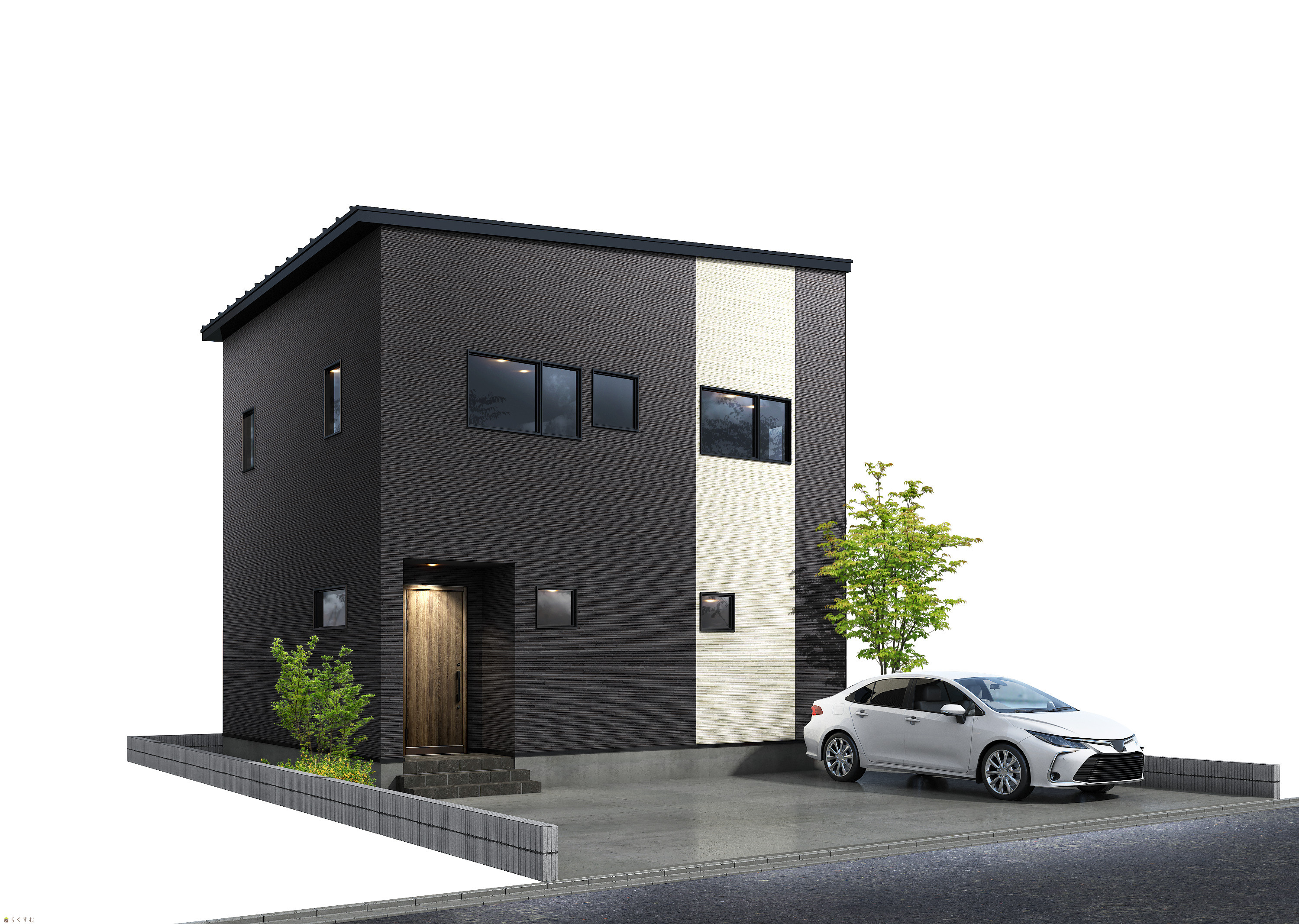 ![]() ※画像クリックで拡大表示 ダークカラーがメインのシックな外観です。駐車は3台可能。