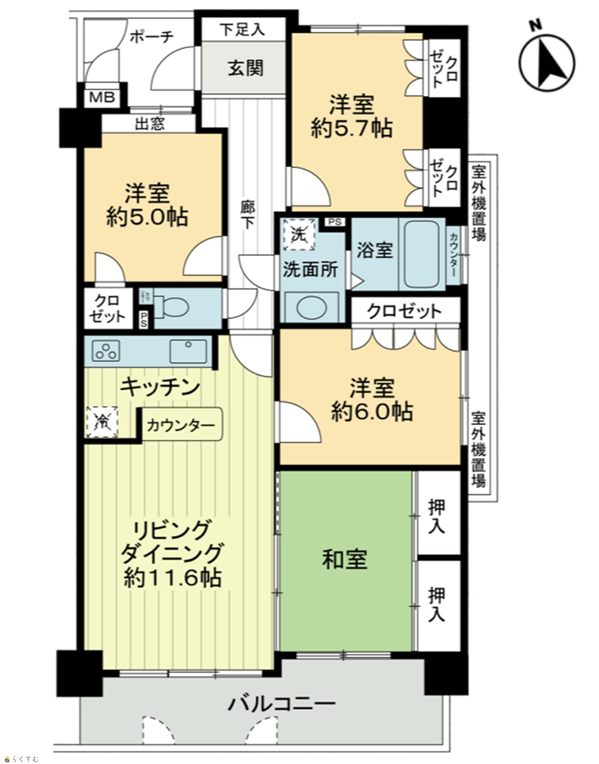 4LDK (洋室:6.0、5.7、5.0) LDK11.6 |