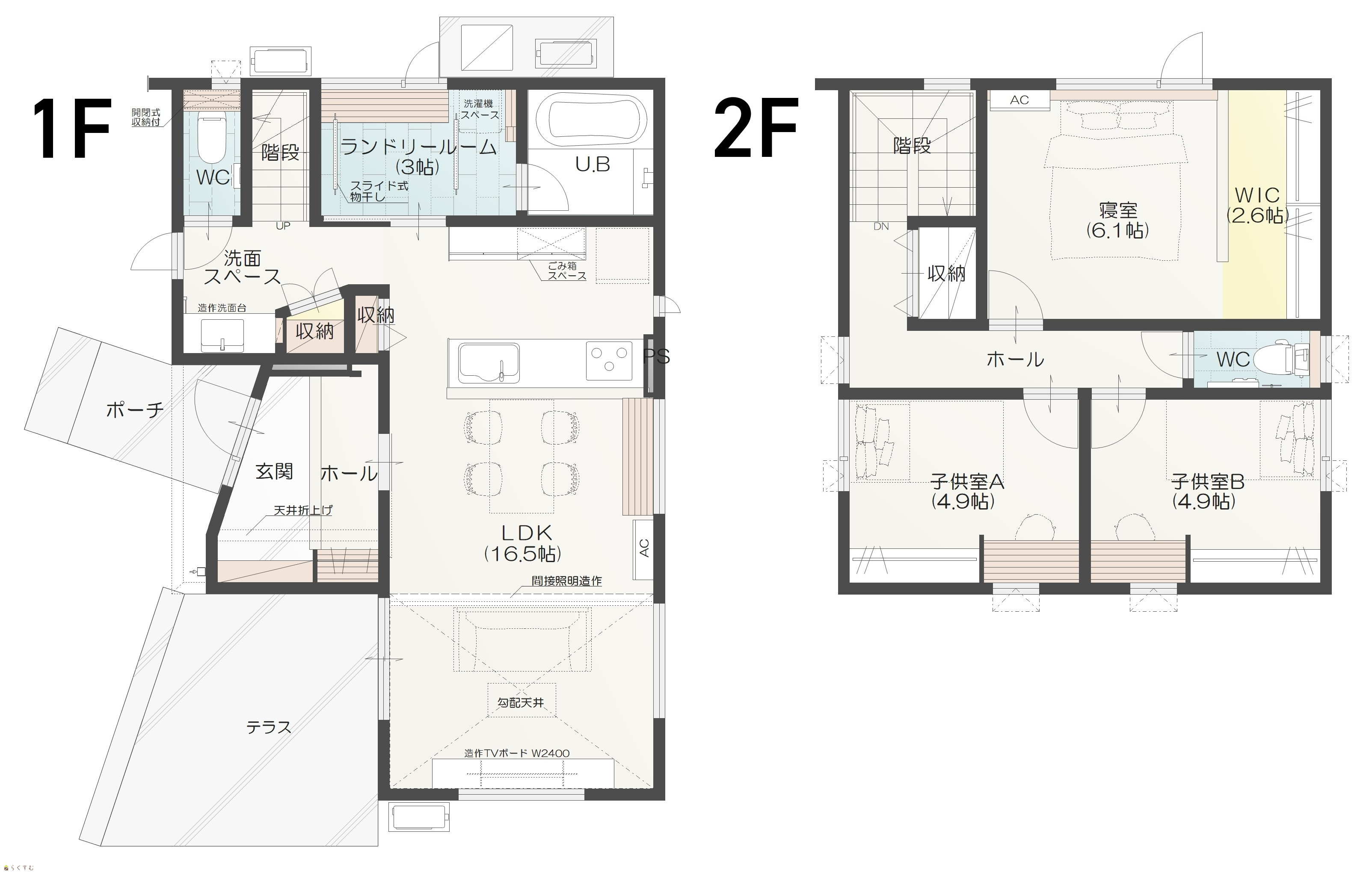 3LDK (洋室:6.1、4.9、4.9) LDK 16.6 ■土地+建物+外構 セットの価格です。 |