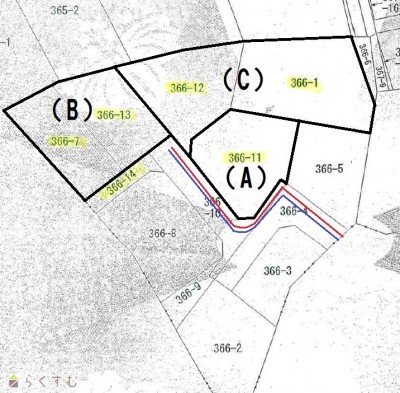 | 備考 | ・現状渡し。 ・ガス・水道引込無し。前面道路まで。 ・浄化槽地域。 ※本体代金に別途仲介手数料・諸経費が掛かりますので予めご了承下さい。 |