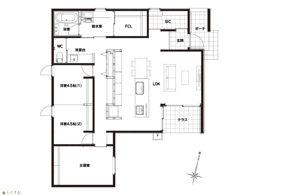 | 備考 | 忙しい共働き世帯にもオススメの家事効率を考えた間取り。 移動が少なく、家の中をスムーズに動けます。 【おすすめポイント】 ◆回遊動線で家事のムダを減らせる ◆アイランドキッチンで作業しやすい ◆玄関近くにパントリーあり(買い物後もラク) ◆シューズインクローク付きで玄関すっきり ◆駐車3台可で来客時も安心 ◆階段なしの平屋で将来も暮らしやすい ◆自然素材を使った住まい <将来的に仕切れる洋室で、ご家族でも快適な暮らし◎> |