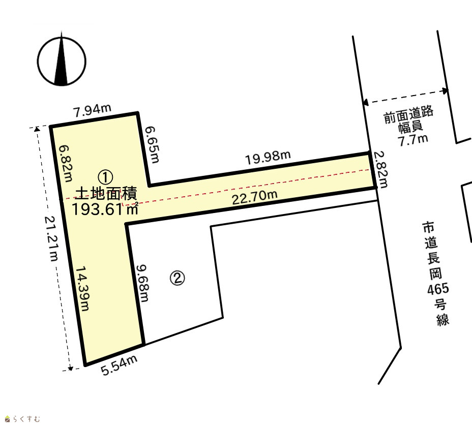 | 形状 | 間口 2.82m × 奥行 27.92m | 道路 | 前面道路幅員7.7m |