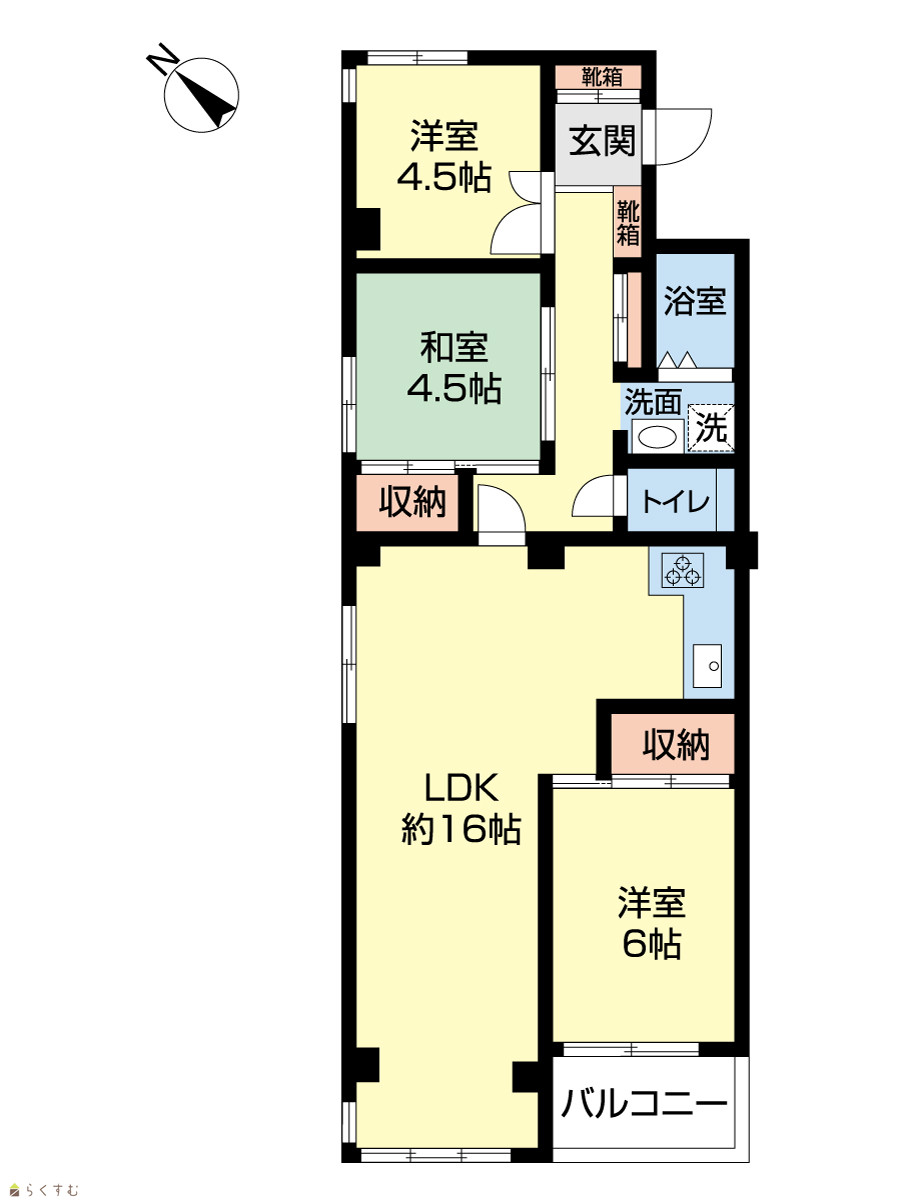 3LDK (和室:4.5畳) (洋室:6、4.5) LDK16 |