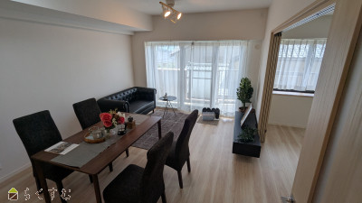ファミリーにおすすめの3LDK。リビングで遊ぶお子様にも目が届く、安心感のあるキッチン。